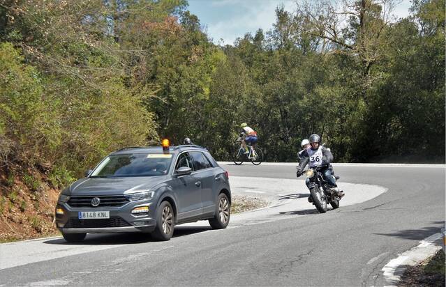 Una vez superado este importante desnivel, la carretera transcurrió por un sinfín de curvas cerradas a derecha e izquierda, que pon a prueba la pericia de los pilotos y la mecánica de las motos, llegando aproximadamente a las 9,45h a Navarcles donde termina el tramo de regularidad del Rally. Aquí es donde nos espera un almuerzo, con el que nos obsequia desde hace muchos años los Amigos del Motor de Navarcles.